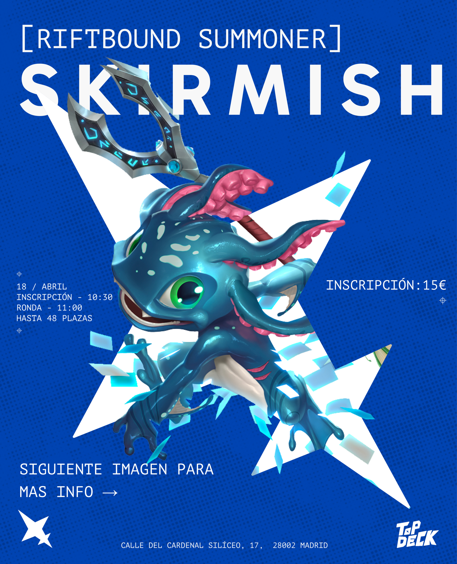 Es necesario enviar la lista por mail a torneostopdeck@gmail.com antes de las 10:00 de la mañana del mismo día (18 de abril) con ASUNTO: “SUMMONER SKIRMISH / Nombre + Apellidos”