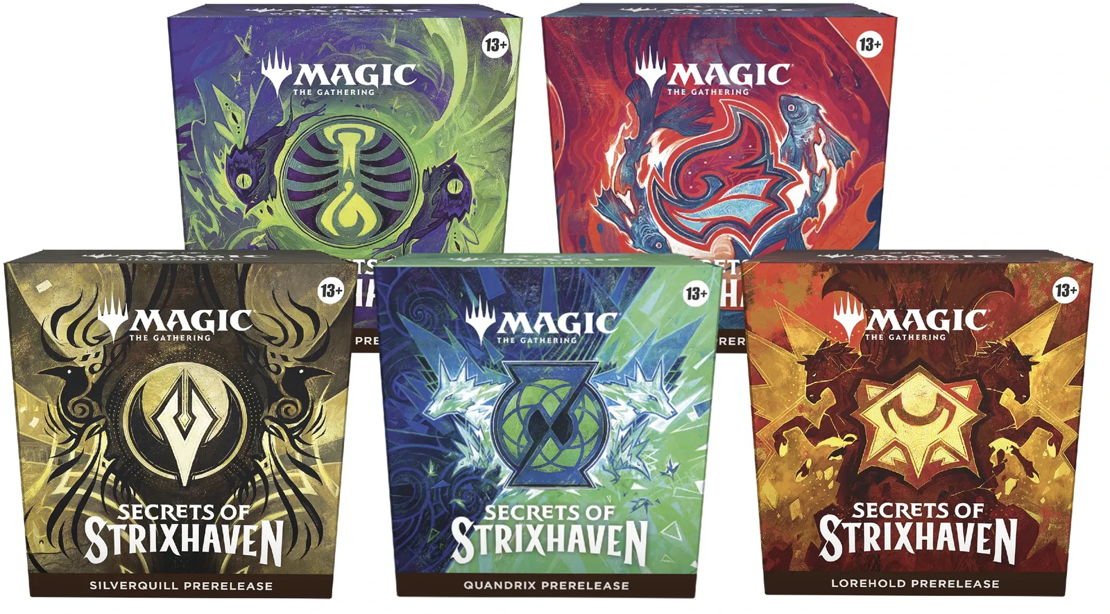 ¡Viste los colores de tu facultad antes del día de lanzamiento! Hazte con un pack en un evento Presentación y sé de los primeros en elegir una facultad y descubrir los secretos de Strixhaven. La Presentación de Secretos de Strixhaven cuenta con cinco Packs de Presentación temáticos, cada uno de los cuales representa una de las cinco facultades de Strixhaven y contiene un dado Spindown temático, un sobre de proporción especial y una carta rara o rara mítica foil tradicional de la colección.