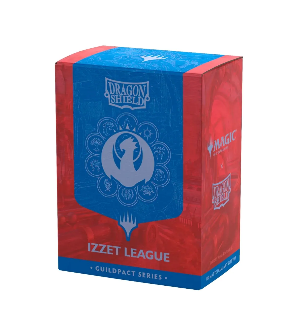 Cada funda presenta el símbolo metálico oficial de la guild Izzet con colores temáticos distintivos.